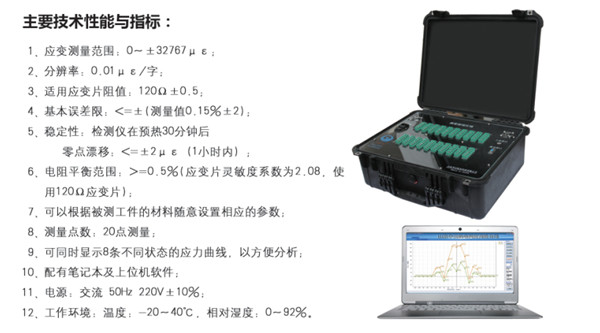 静态电阻应力仪用电学方法丈量不随时间力化或力化极为缓慢的静态应力。它由丈量电桥、放大器、显示仪表和读数机构等组成。贴在被测构件上的电阻应力计接于丈量电桥上。构件受载力形时,丈量电桥有电压输出,经放大器放大后由仪器所带的应力计算软件计算出相应的应力值。