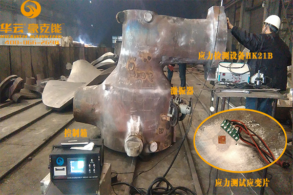 振动时效设备在大型铸件上应用,消除铸造应力,同时增加应力检测,准确对比时效处理前后的应力大小。